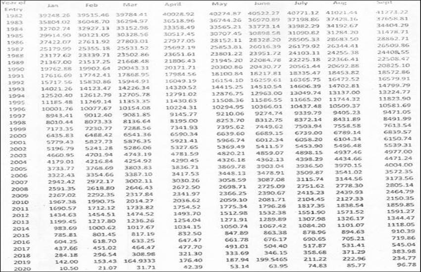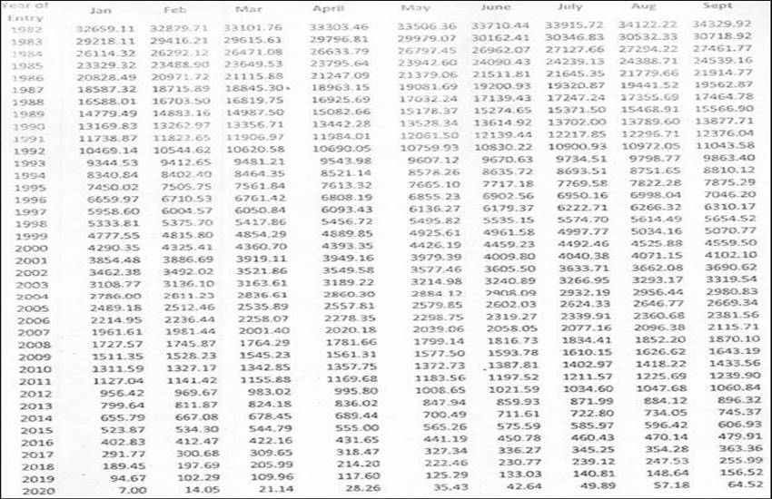 टेबल-I: 1.1.1982 से 31.12.1989 के बीच 10 रुपये के सब्सक्रिप्शन और 1.1.1990 के बाद से अबतक 15 रुपये के सब्सिक्रिप्शन के लिए जारी की गई टेबल देखें:-