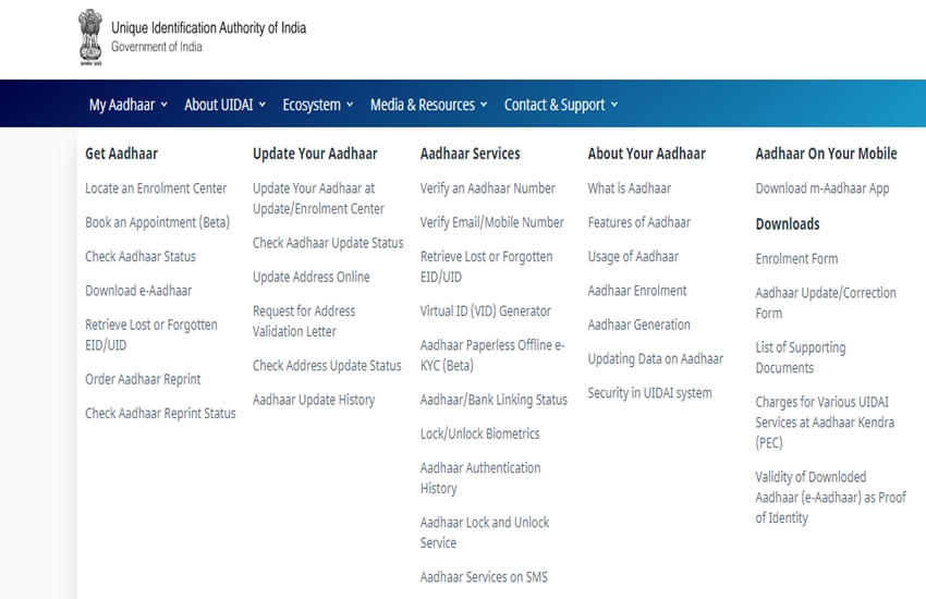1. आधार यानि कि यूआईडीएआई की आधिकारिक वेबसाइट https://uidai.gov.in/ पर जाएं।