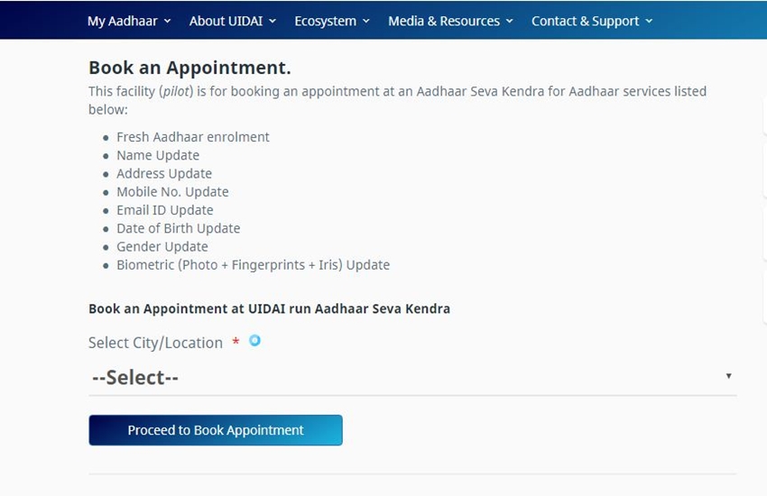 5. अब सिटी सेलेक्ट कर Proceed to Book Appointment पर क्लिक कर दें।