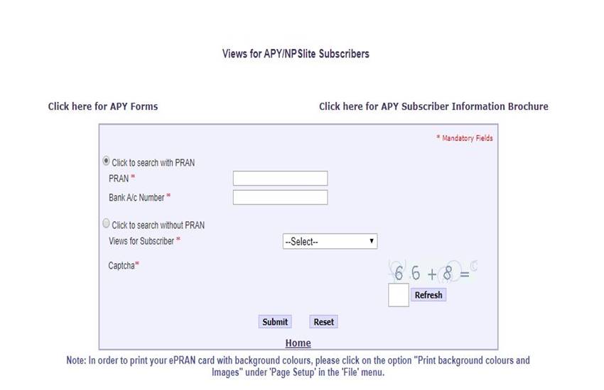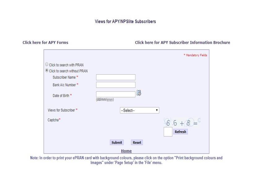 इसके अलावा अगर आप बिना PRAN के भी अपनी डिटेल्स चेक कर सकते हैं। इसके लिए सब्सक्राइबर का नाम और अकाउंट नंबर की डिटेल भरनी होगी। डेट ऑफ बर्थ और Views for Subscriber में मौजूद विकल्पों में से किसी एक को चुनना होगा। इसके बाद कैप्चा कोड दर्ज करने के बाद Submit पर क्लिक करना होगा। आपके सामने सारी डिटेल्स होंगी।