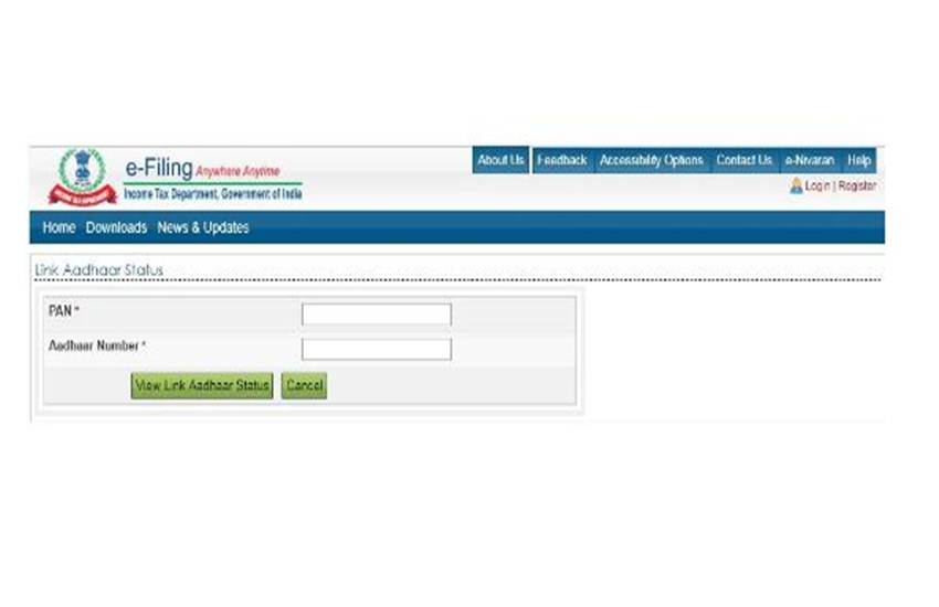 आपको “click here” हाइपरलिंक पर क्लिक करना होगा। यहां आपको आधार और पैन की डिटेल भरनी होगी।