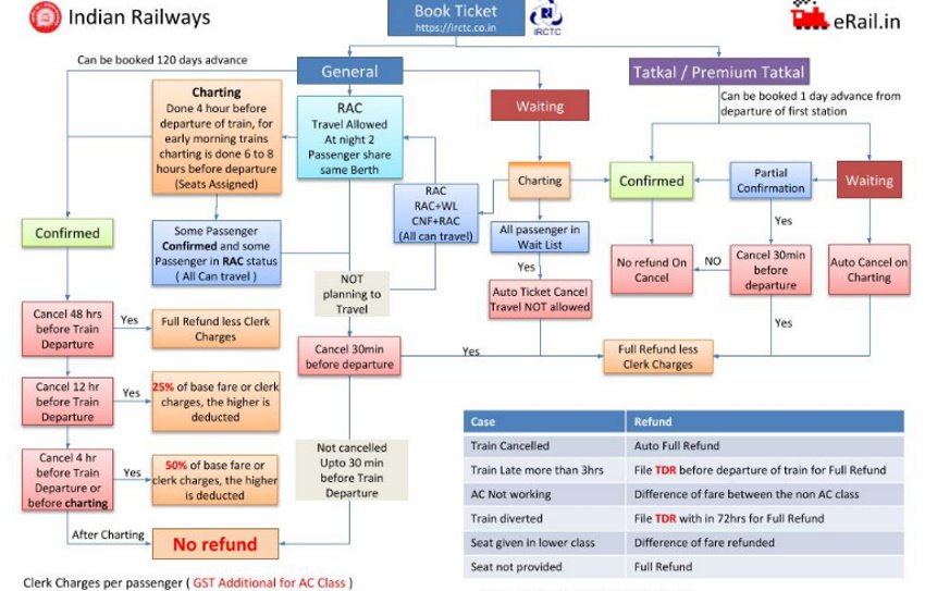 अगर यात्री पीआरएस काउंटर से टिकट प्राप्त करता है तो यात्रा शुरू करने वाले स्टेशन पर अपना टिकट सरेंडर करके रिफंड ले सकता है। टिकट रिफंड पर किसी तरह की कटौती नहीं की जाएगी। वहीं टीडीआर दाखिल करके ई-टिकट पर रिफंड लिया जा सकता है। इस प्रक्रिया में कम से कम 90 दिन और अधिक समय लगेगा।