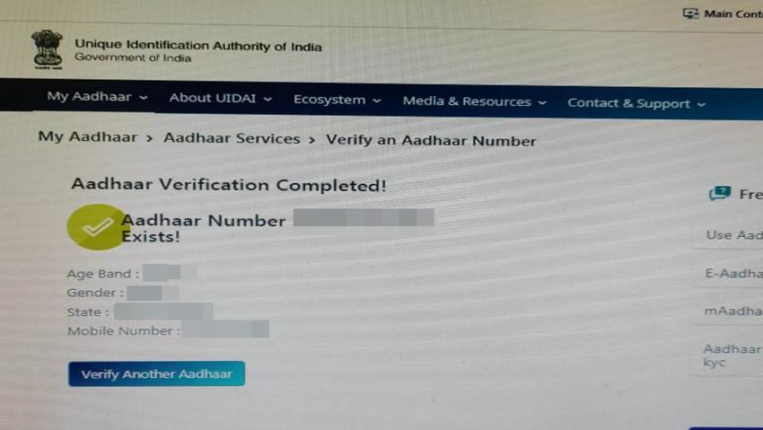 यहां आपको 12 अंकों वाला Aadhaar Number (UID) डालना होगा, जिसके बाद कैप्चा वेरिफिकेशन के लिए सामने एक कोड आएगा। उसे भरने के बाद ‘Proceed to Verify’ करें। यह काम करते ही आपके आधार वेरिफिकेशन का स्टेटस सामने आ जाएगा। आपकी रजिस्टर्ड होगा, तब स्क्रीन पर इस तरह पर कुछ ऐसा मैसेज (नीचे स्क्रीनशॉट में) नजर आएगा।