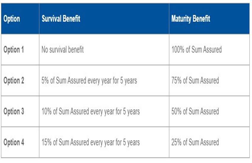 यह एक विथ प्रोफिट प्लान है इसका मतलब है कि एलआईसी अपने मुनाफे को पॉलिसीधार के साथ शेयर करेगी। यह एक लिमिटेड प्रीमियम पेमेंट प्लान है जिसमें पॉलिसी पीरियड से पांच वर्ष कम तक पॉलिस पेमेंट का भुगतान करना होता है। इसमें पॉलिसीधारक को चार विकल्प दिए जाते हैं जिसमें से किसी एक को चुनकर पॉलिसी खुद डिजाइन की जा सकती है।