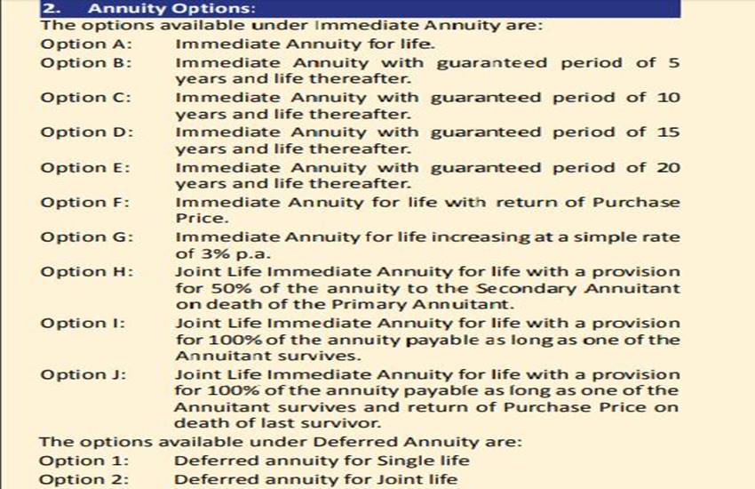 दरअसल इस पॉलिसी के तहत ग्राहक को दो तरह से रिटर्न हासिल करने के विकल्प मिलते हैं। पहला ये कि वे तुरंत पेंशन हासिल करे और दूसरा कुछ समय बाद। एलआईसी की भाषा में इसे इमीडिएट और डेफ्फर्ड एन्युटी कहा जाता है। इमीडिएट का मतलब है कि पॉलिसी लेने के तुरंत बाद ही पेंशन तो वहीं डेफ्फर्ड एन्युटी का मतलब है पॉलिसी लेने के कुछ समय (5, 10, 15, 20 साल) बाद पेंशन का भुगतान।