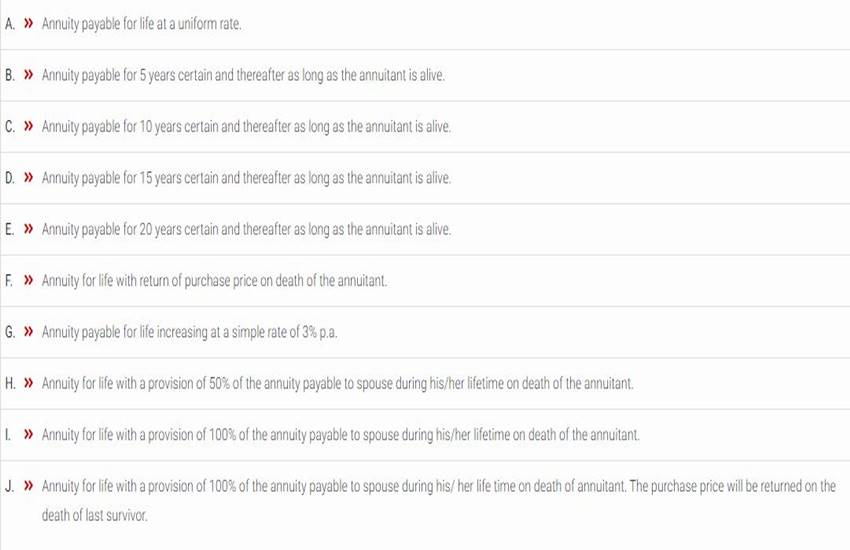 इस पॉलिसी में एकमुश्त निवेश कर आप हर महीने 19 हजार रुपये की पेंशन पा सकते हैं। इस पॉलिसी के तहत ग्राहकों को एन्यूटी पर 10 तरह के विकल्प मिलते हैं। अगर आप तुरंत पेंशन पाना चाहते हैं तो ऑप्शन ‘A’ यानी Annuity payable for life at a uniform rate के विकल्प को चुनें। आइए उदारहरण से समझते हैं कि कैसे कोई व्यक्ति इसके जरिए हर महीने 19 हजार रुपये पा सकता है:-