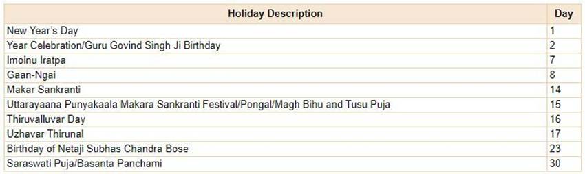 7 जनवरीः इंफाल में Imoinu Iratpa के जश्न की वजह से बैंक का अवकाश है।