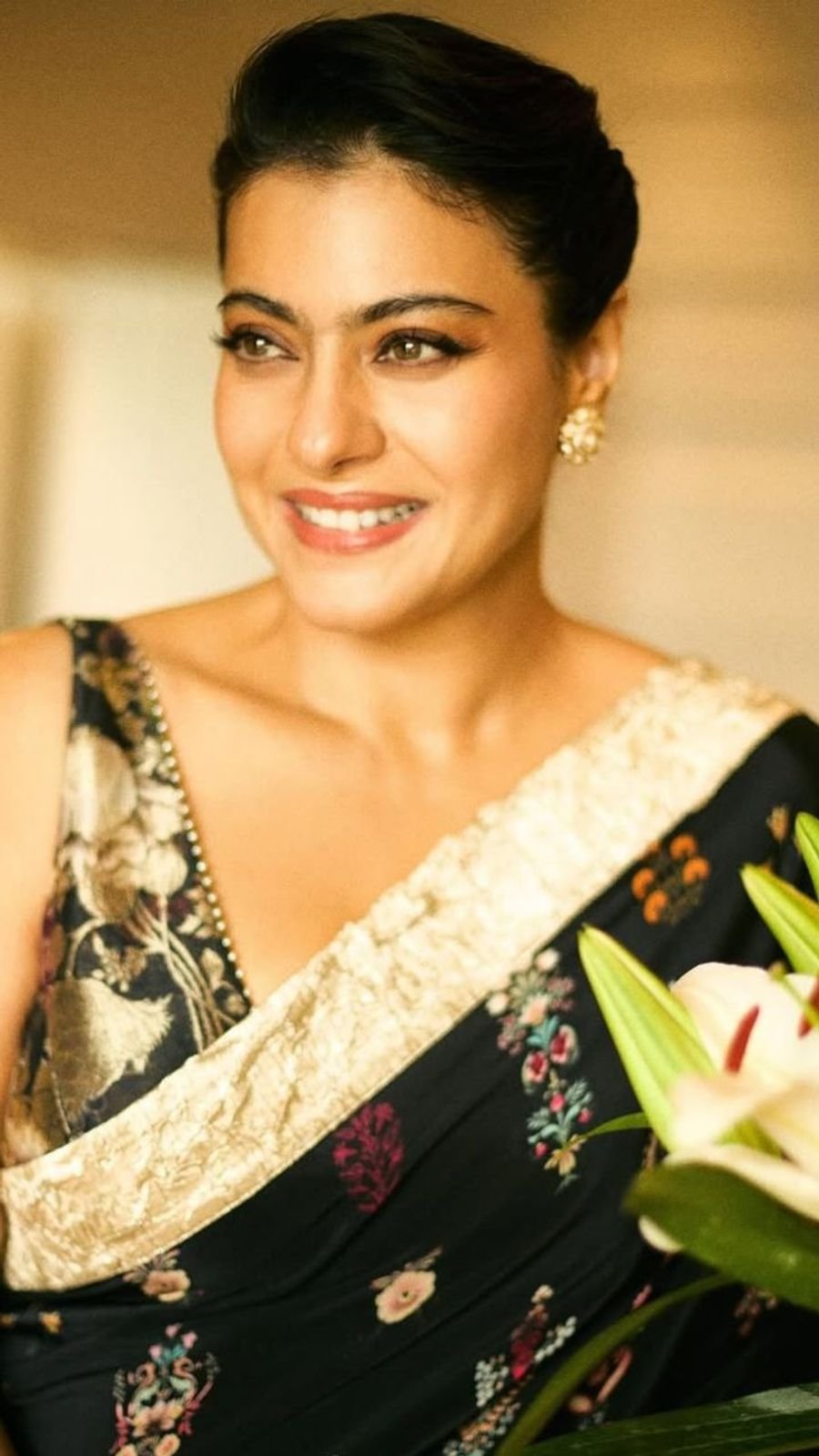 ब्लैक साड़ी के साथ अपने लुक को पूरा करने के लिए काजोल ने मिनिमल मेकअप किया।