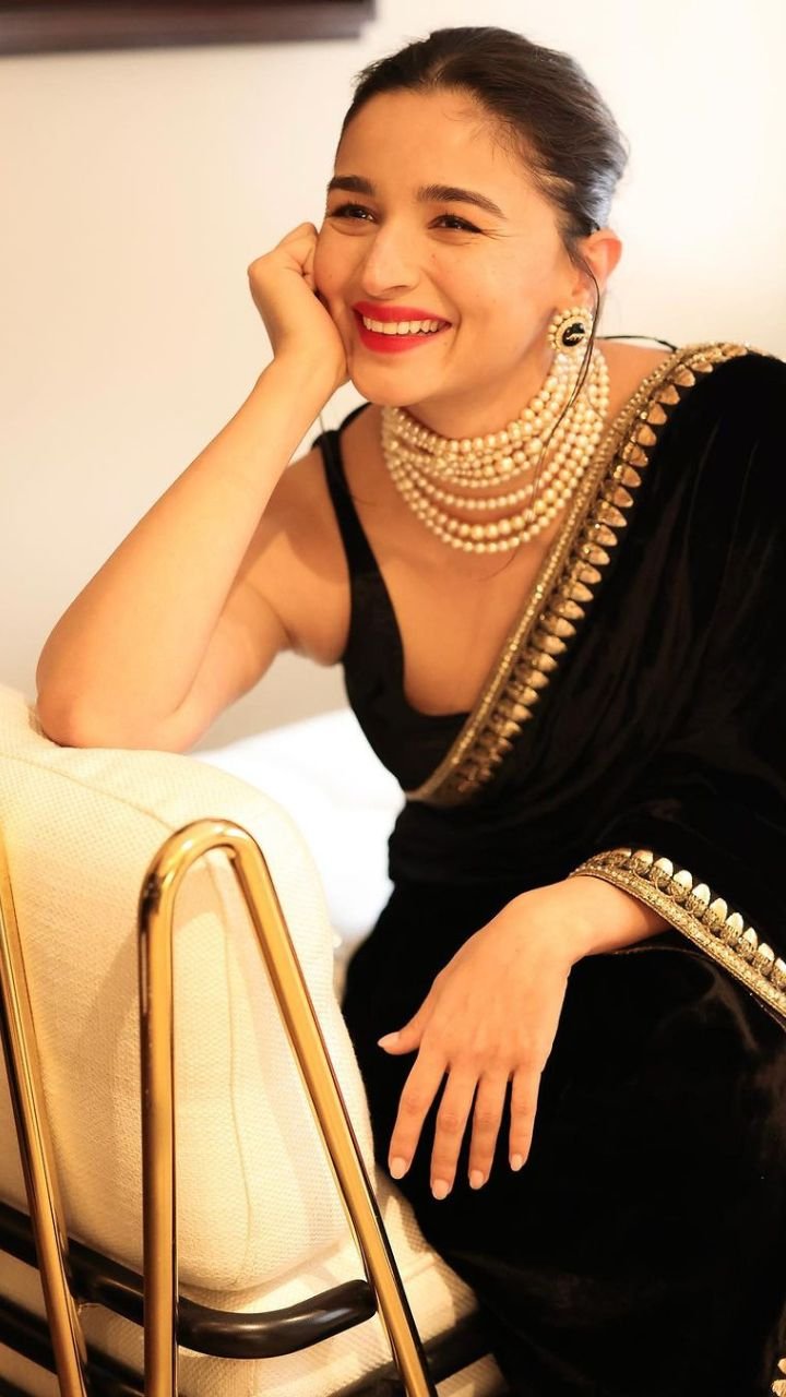आलिया ने साड़ी के साथ गले में मल्टीलेयर्ड मोतियों की माला और मिनिमल इयररिंग्स पहने थे।