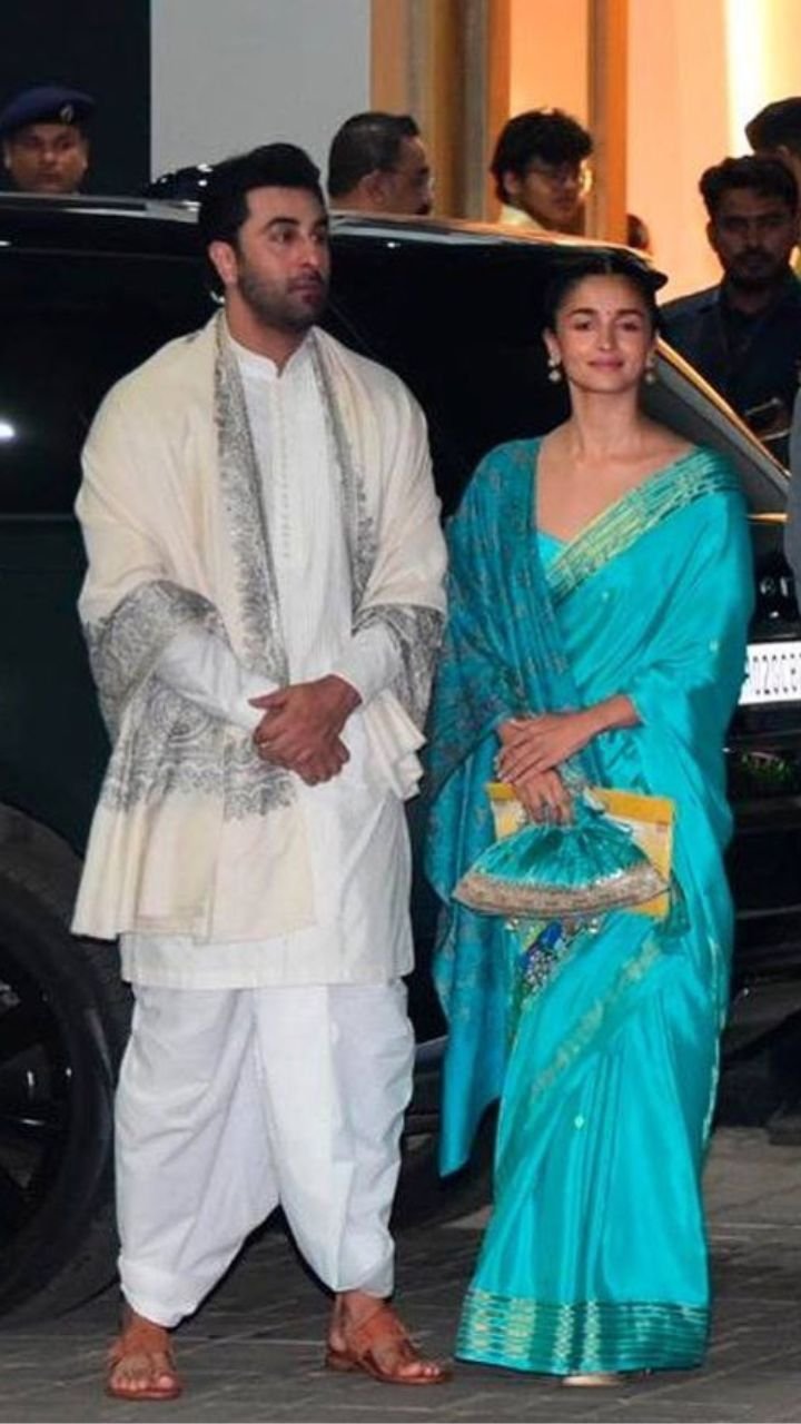 वहीं आलिया के अलावा उनके पति यानी बॉलीवुड एक्टर रणबीर कपूर भी इस दौरान ट्रेडिशनल लुक में नजर आए। उन्होंने इस दौरान व्हाइट कलर का धोती कुर्ता और शॉल कैरी किया था। इस कपल का अंदाज इस धार्मिक इवेंट के लिए एकदम परफेक्ट लग रहा है।