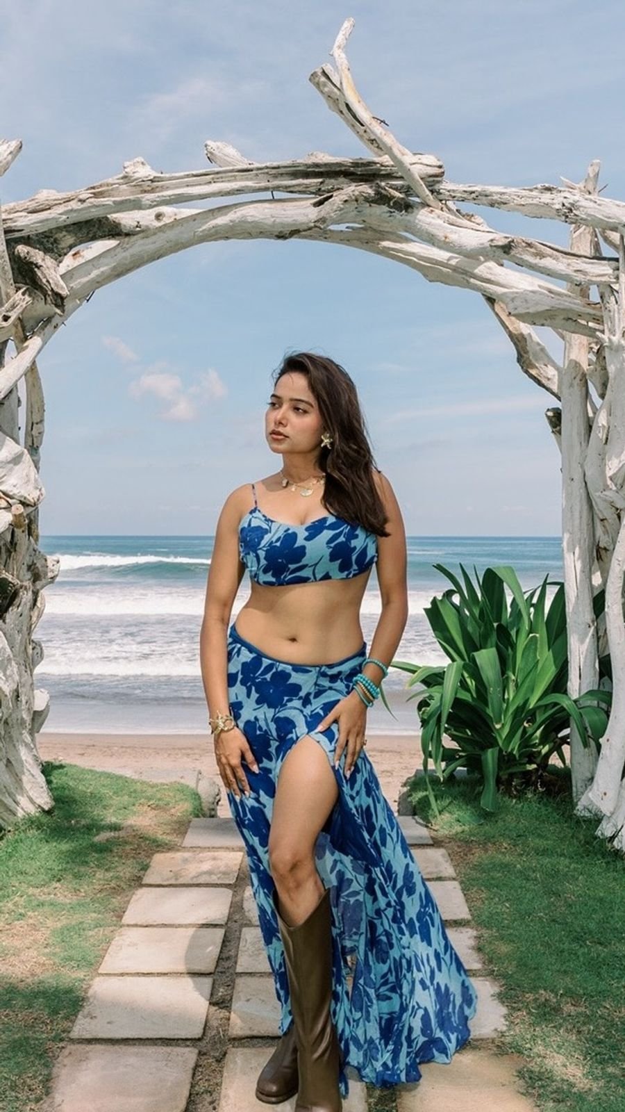 फोटोज में एक्ट्रेस को ब्लू प्रिंटेड आउटफिट में समंदर और पूल के किनारे पोज दिया है। इसमें उनका लुक देखकर फैंस उन पर दिल हार गए हैं।