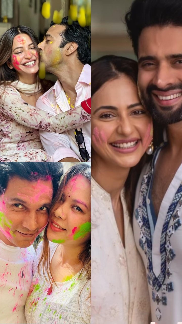 रकुल प्रीत सिंह और जैकी भगनानी ने शादी के बाद पहली होली खेली। इस मौके पर कपल ने गुलाल लगाए हुए फोटो शेयर की है।