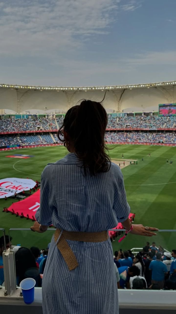 टीम इंडिया के हालिया मैच के दौरान दुबई स्टेडियम में एक्ट्रेस एक्ट्रेस और सिंगर जैस्मिन वालिया को चीयर करते हुए देखा गया।