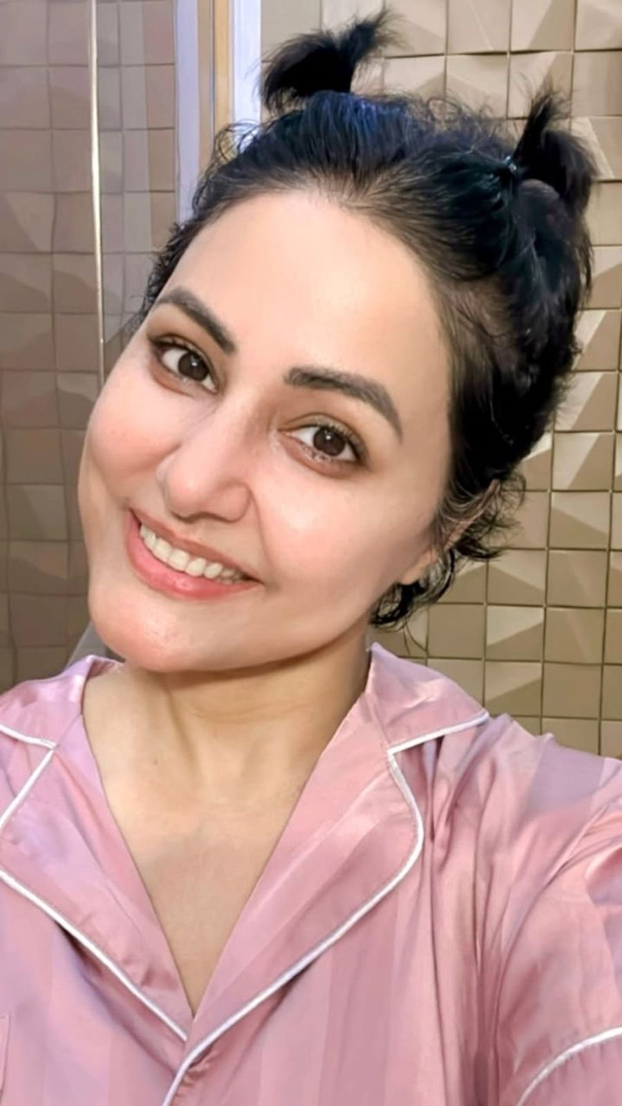 हिना ने छोटी-छोटी दो चोटी बनाई हैं और लिखा है- "उफ ये छोटी-छोटी खुशियां।"