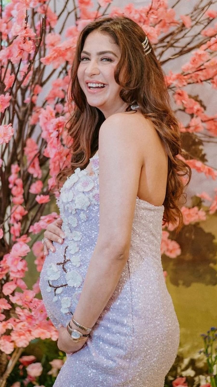 मालविका ने बेबी शावर की एक तस्वीर दिखाई, जहां हर तरफ फूल ही फूल थे। वहां पिंक और ब्लू कलर की डेकोरेशन हुई थी।
