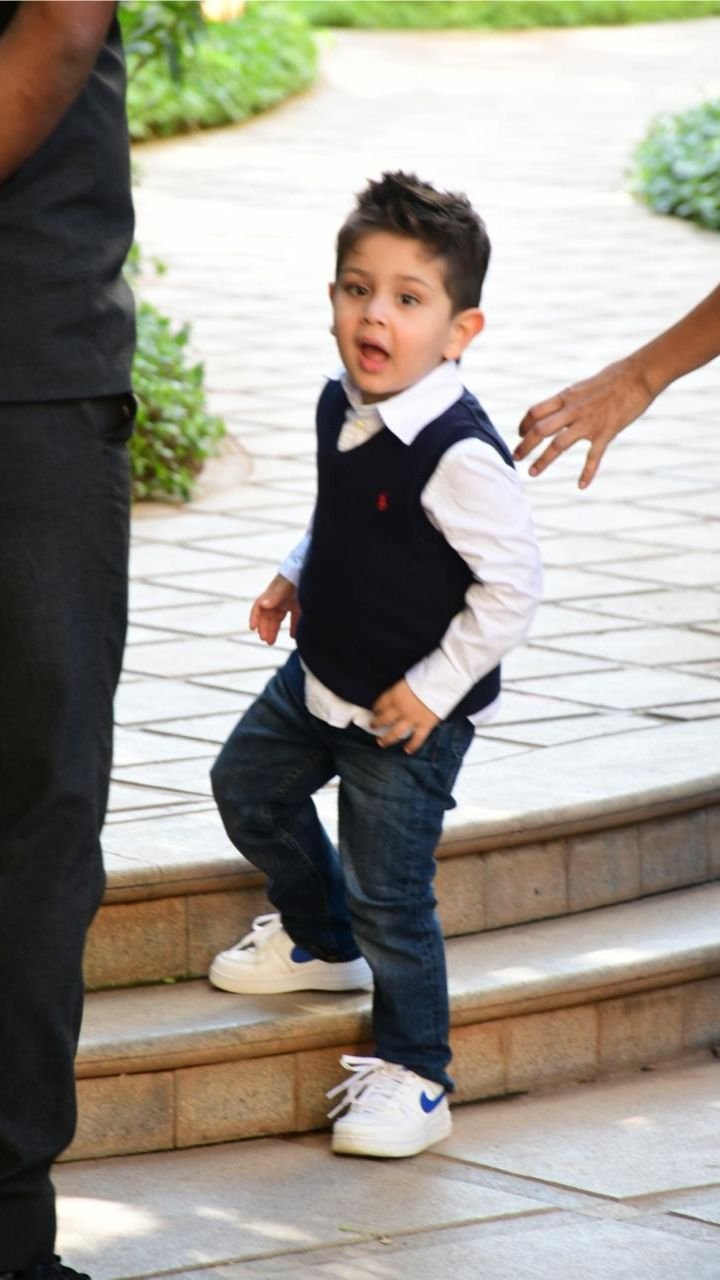 जेह ने पैपराजी को देखकर उनसे बात करने की कोशिश भी की।