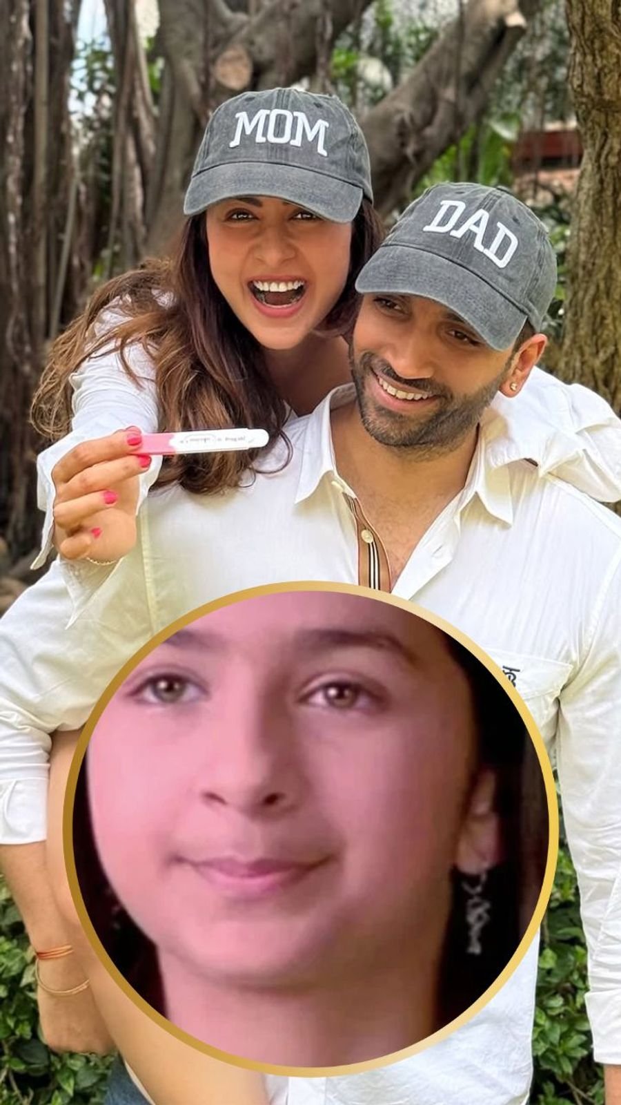 सोशल मीडिया पर सामने आई फोटोज में दोनों को कस्टमाइज्ड 'मॉम' और 'डैड' कैप पहने हुए देखा जा सकता है। फोटो में उन्होंने दिखाया कि उनका प्रेग्नेंसी टेस्ट पॉजिटिव आया है।