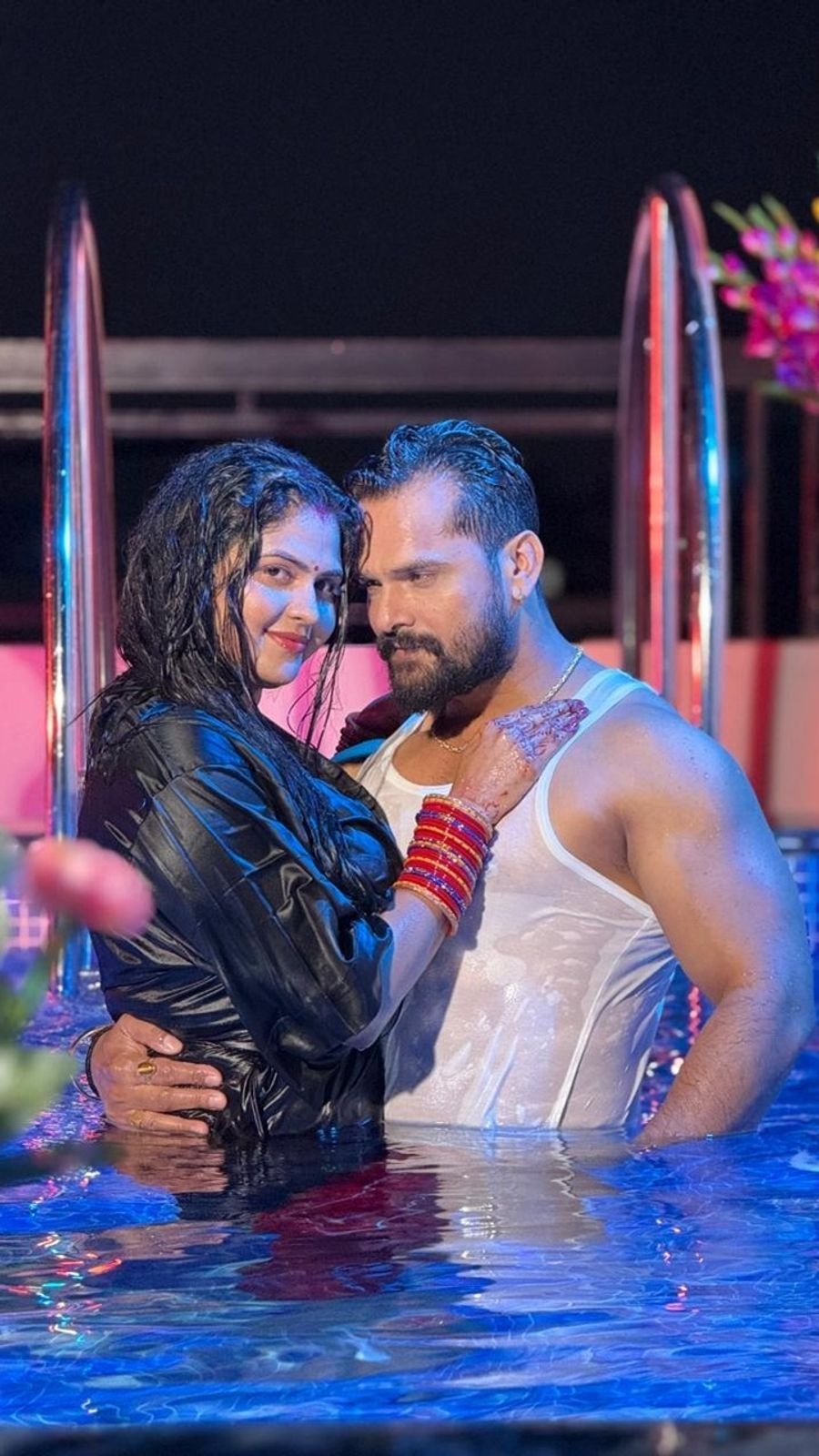बीटीएस फोटोज में ट्रेंडिंग स्टार और चांदनी को साथ में पूल में देखा जा सकता है, जिसमें दोनों बेहद ही कोजी नजर आ रहे हैं।