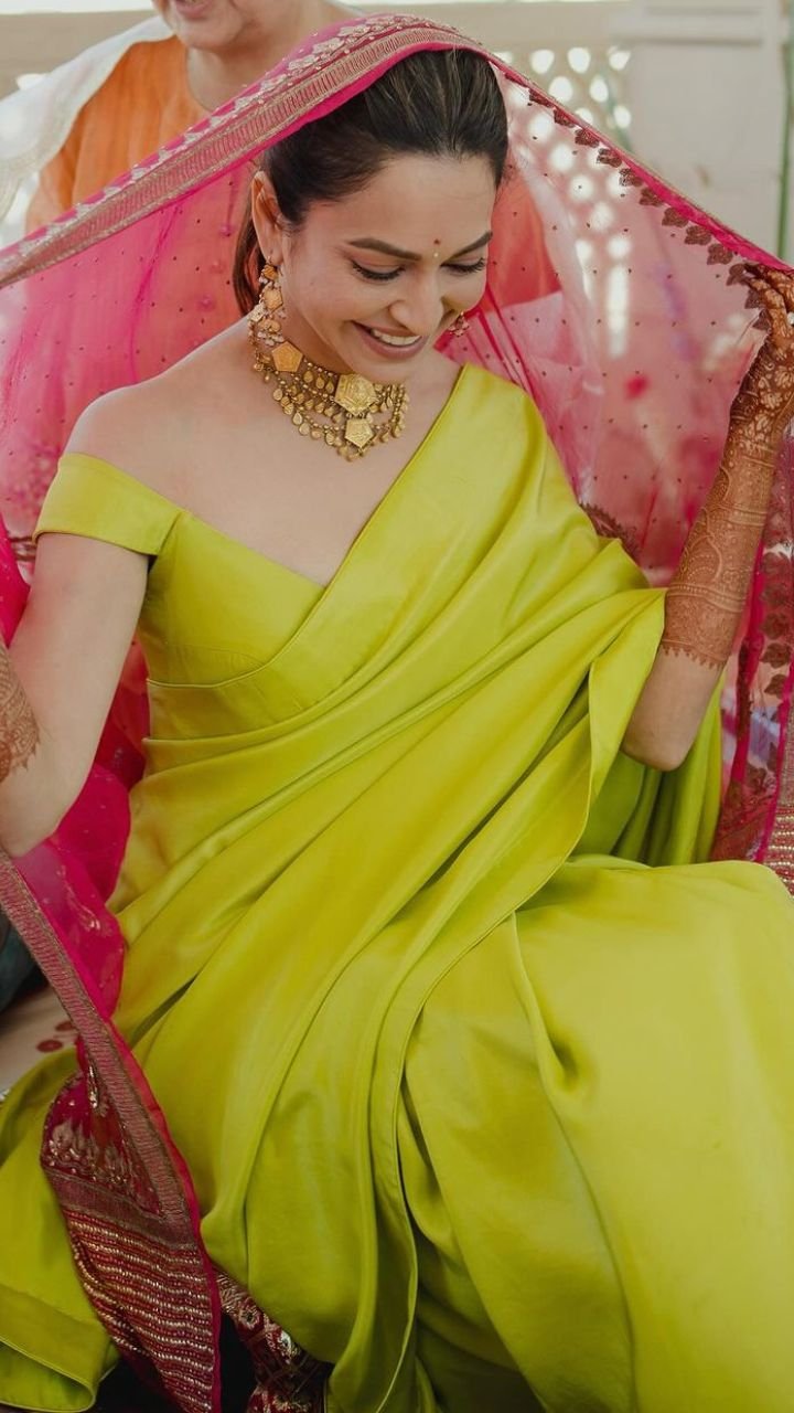 कृति की सास की इच्छा थी कि उनकी बहू गुलाबी रंग का जोड़ा पहने और कृति ने ऐसा ही किया।