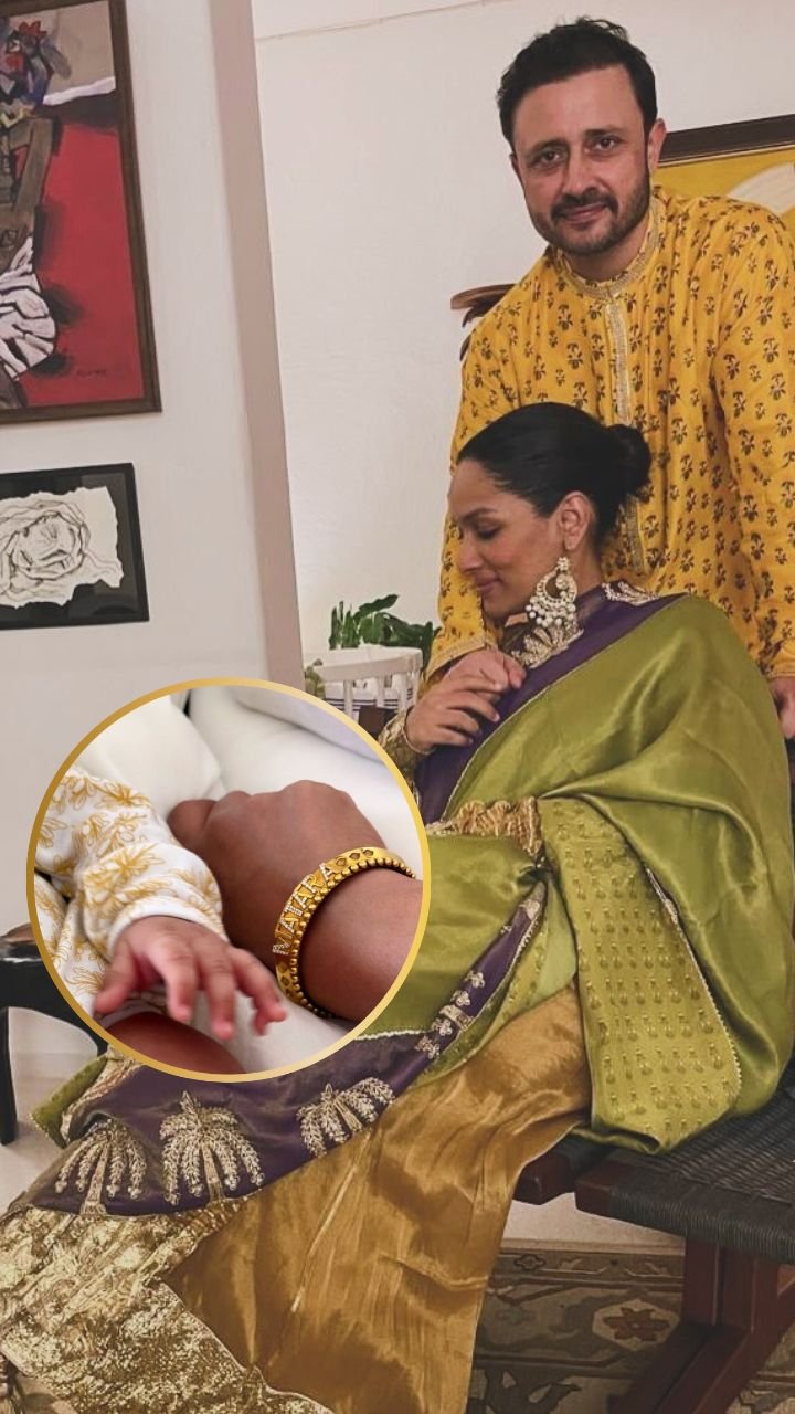 मसाबा ने इंस्टाग्राम पर एक फोटो शेयर की, जिसमें उनकी बेटी के नन्हें हाथ और उनके हाथ की झलक दिखाई दी, जिसमें उन्होंने कड़ा पहना हुआ था।