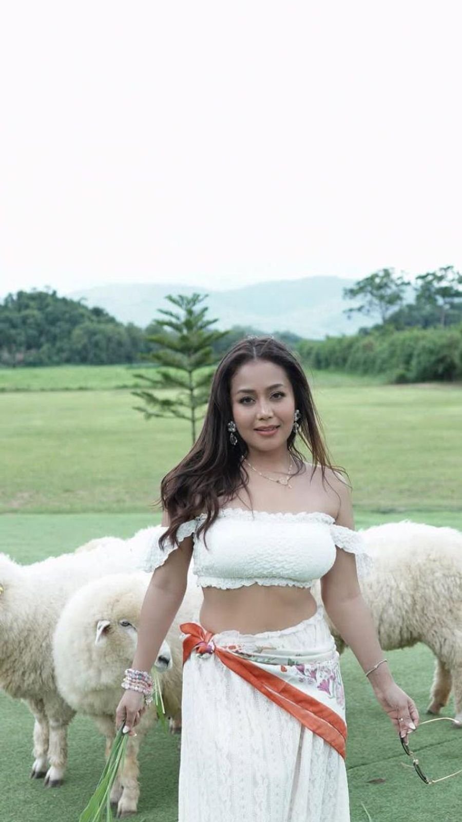 नेहा तस्वीरों में भेड़ के साथ नजर आ रही हैं।
