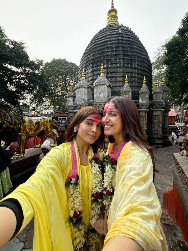 बहन समीक्षा के साथ मां कामाख्या के दर्शन करने पहुंचीं भूमि पेडनेकर