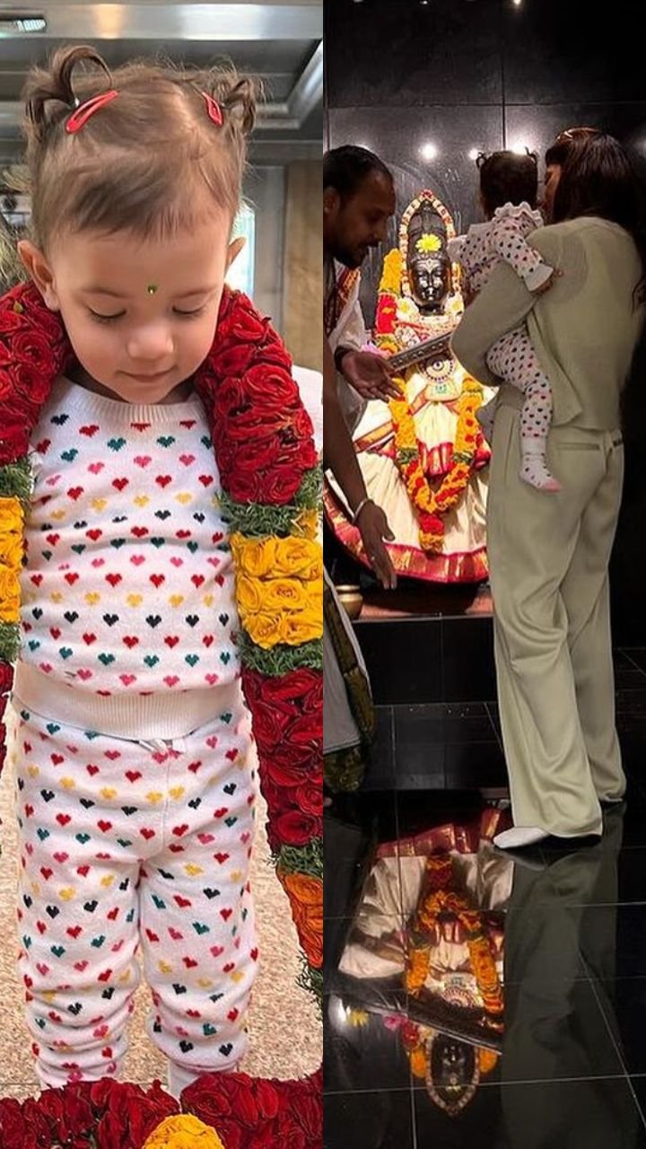 फोटोज में दो साल की मालती को गले में बड़ी फूल माला डाले हुए भक्ति में लीन देखा जा सकता है। एक्ट्रेस ने बेटी को गोद में लेकर मां के दर्शन भी कराए।