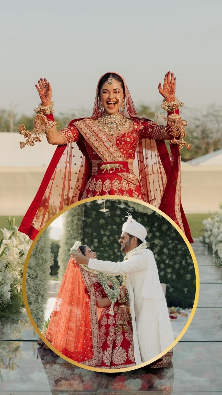 सोशल मीडिया पर सामने आई तस्वीरों में देखा जा सकता है कि मीरा दुल्हन के जोड़े में बेहद खूबसूरत लग रही हैं।