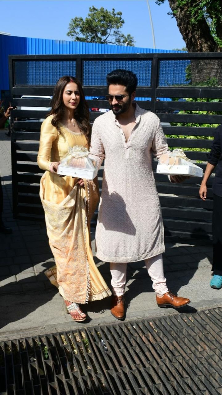 रकुल प्रीत और जैकी ने मिलकर पैपराजी को स्वीट्स बाटी।
