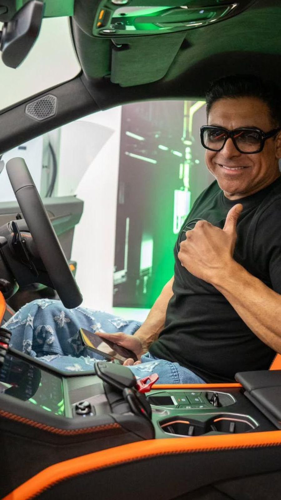 उनकी कार का इंटीरियर ब्लैक और ऑरेंज कलर का है।
