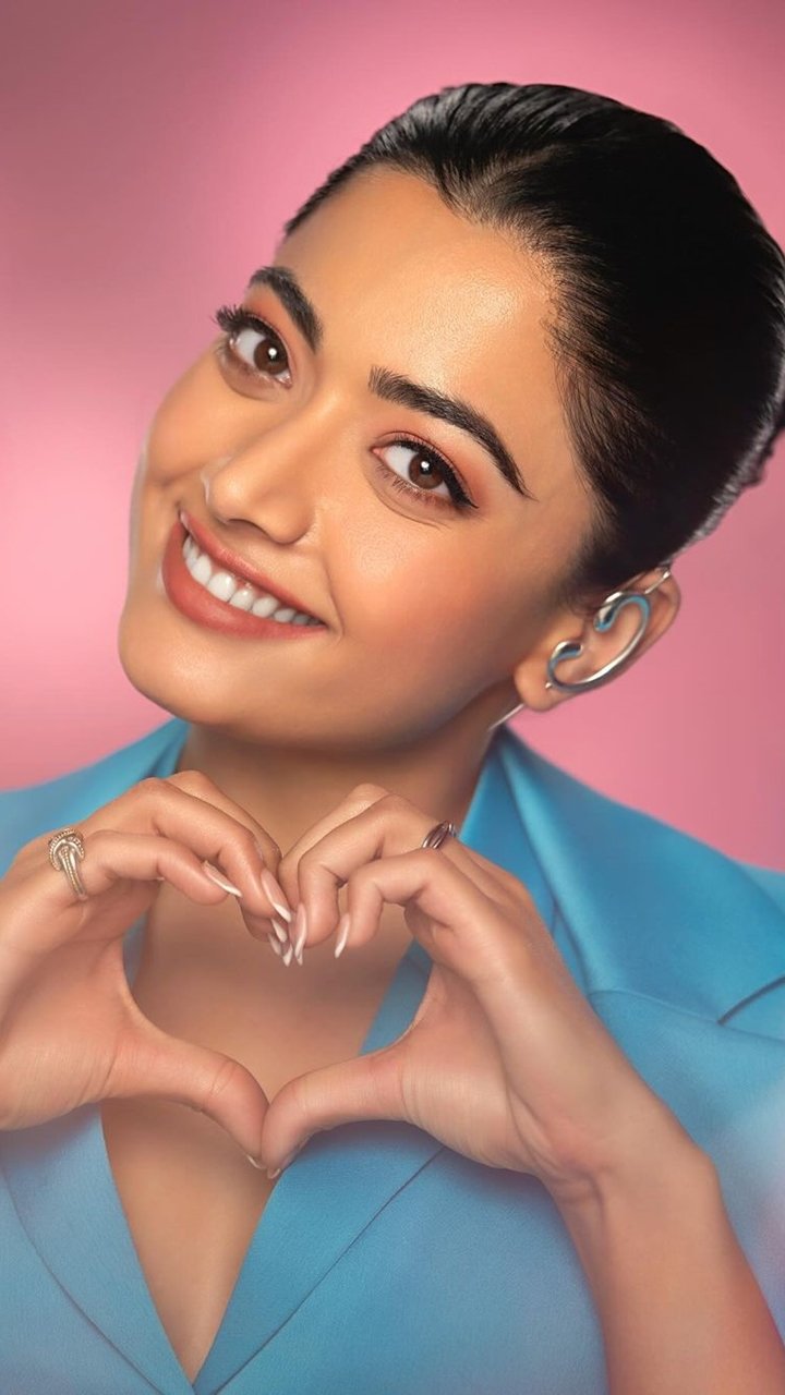 ब्लू ब्लेजर में रश्मिका प्यार लुटा रही हैं।