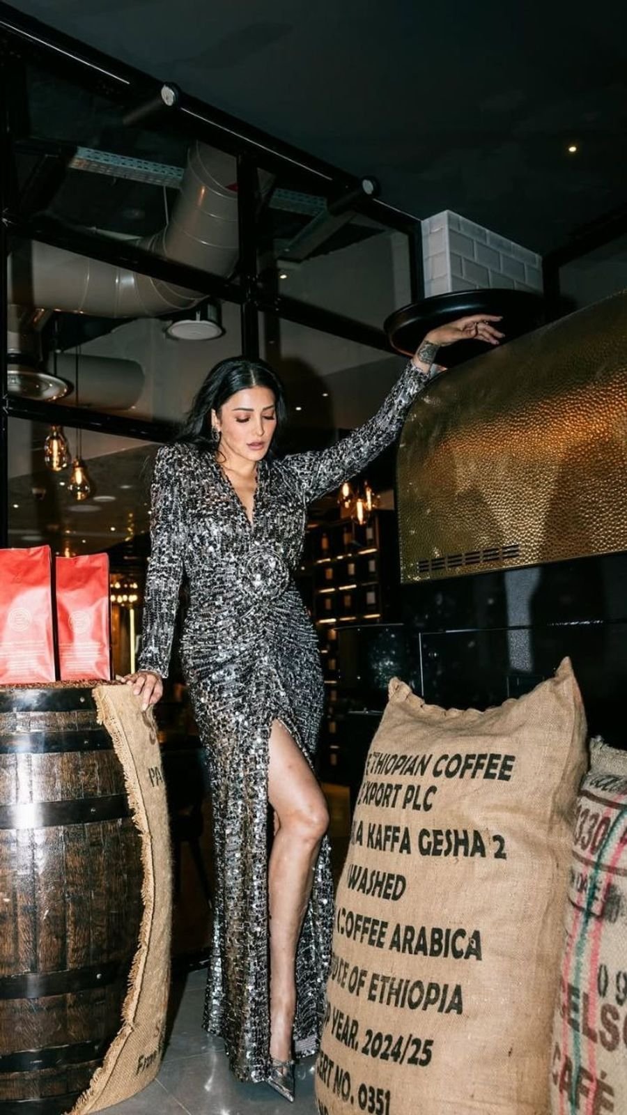 इस आउटफिट में श्रुति हासन एक से बढ़कर एक कातिलाना पोज देती दिखीं। किसी भी पार्टी के लिए ये गाउन आप भी ट्राई कर सकते हैं जिसमें बेहद सिजलिंग लगेंगी।