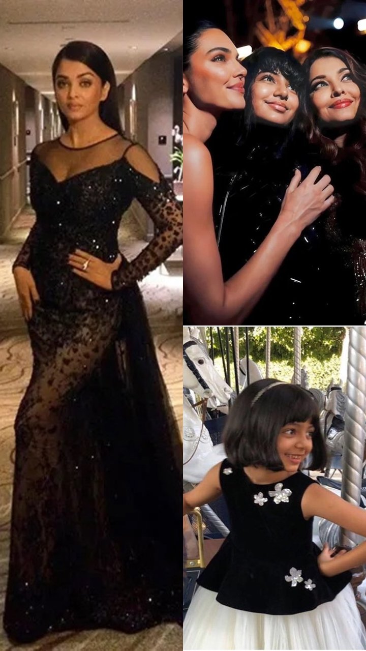 मां ऐश्वर्या और कैंडल जेनर के साथ ब्लैक ड्रेस में आराध्या।