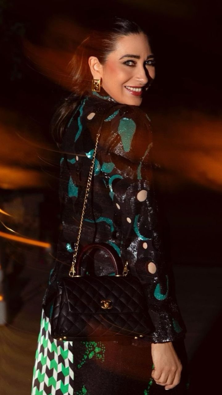 ब्लैक कलर की इस ड्रेस में करिश्मा कपूर बेहद खूबसूरत लग रही हैं।