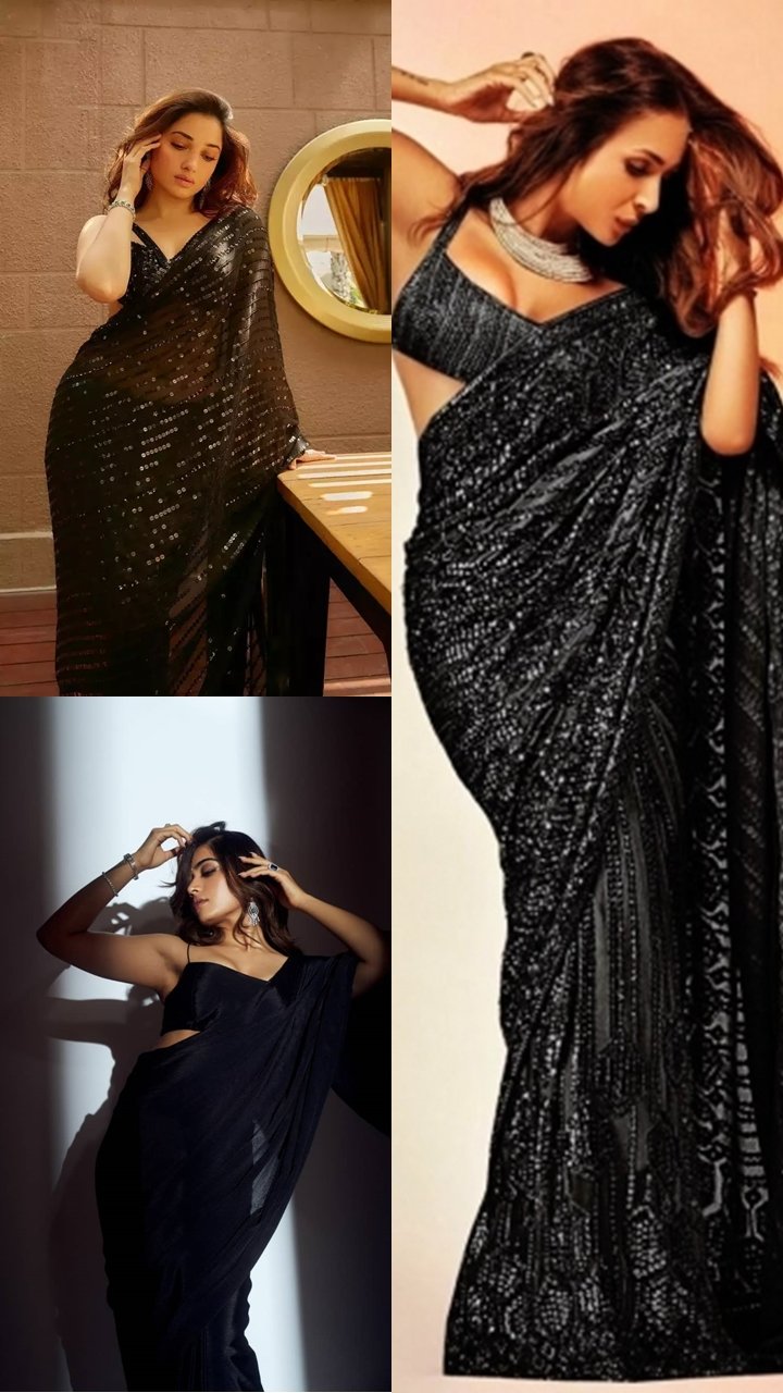 आइए देखते हैं काली साड़ी में बॉलीवुड एक्ट्रेसेस। देखकर बताइए कि आपका फेवरेट कौन है।