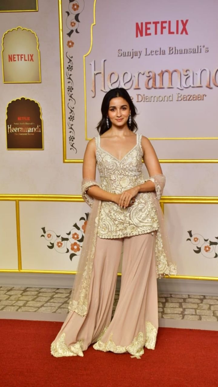 हीरामंडी के प्रीमियर में बॉलीवुड से लेकर साउथ तक के तमाम सितारे शामिल हुए। लेकिन इस प्रीमियर पर सबकी निगाहें बॉलीवुड एक्ट्रेस आलिया भट्ट पर टिकी रही।