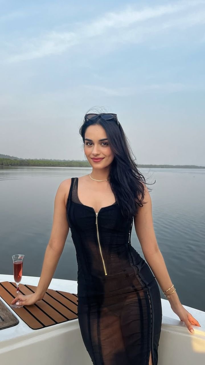 बोट पर बैठी मानुषी छिल्लर काले लिबास में अपने हुस्न का जलवा बिखेरती नजर आईं।