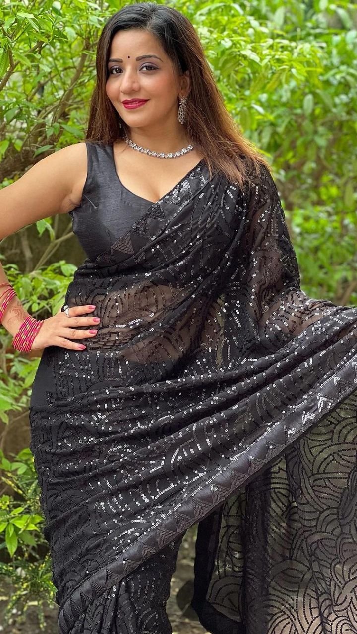 मोनालिसा के इस साड़ी को आप भी ट्राई कर सकती हैं। इसमें आप भी बेहद सिजलिंग लगेंगी।