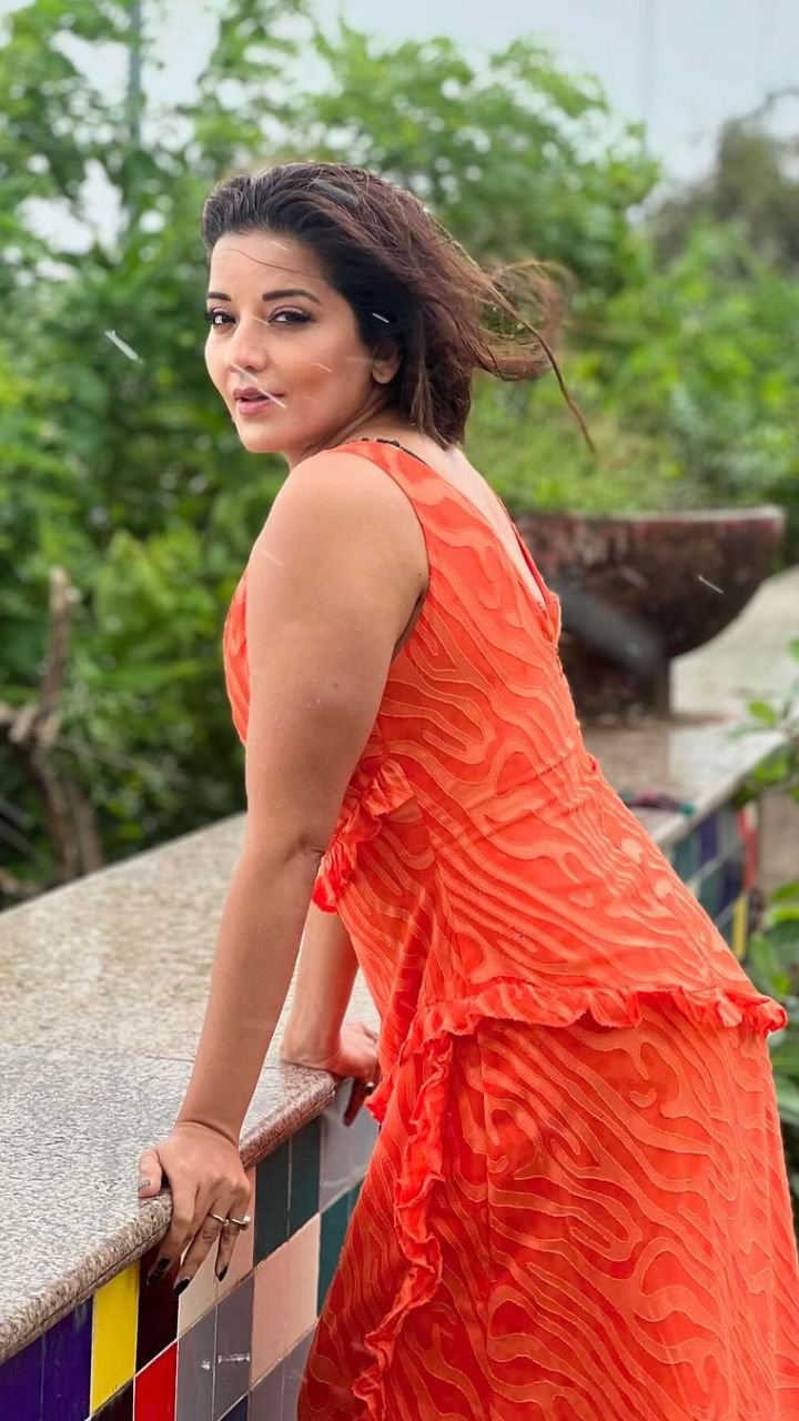 इस वनपीस ड्रेस में मोनालिसा एक से बढ़कर एक कातिलाना पोज देती दिखीं।