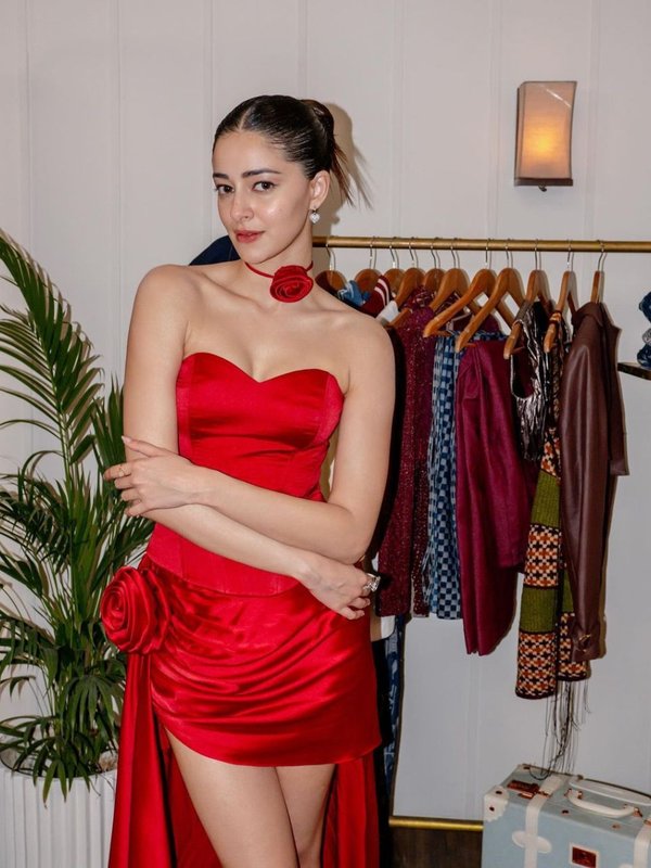 लाल लिबास में अनन्या पांडे की इन अदाओं ने लूटी महफिल