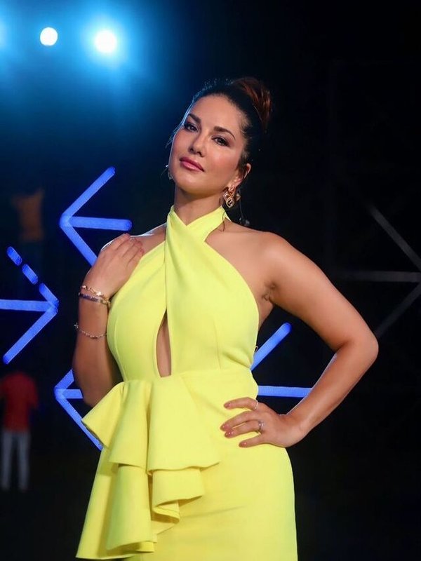 Sunny Leone ने पीले रंग की ड्रेस में दिए किलर पोज