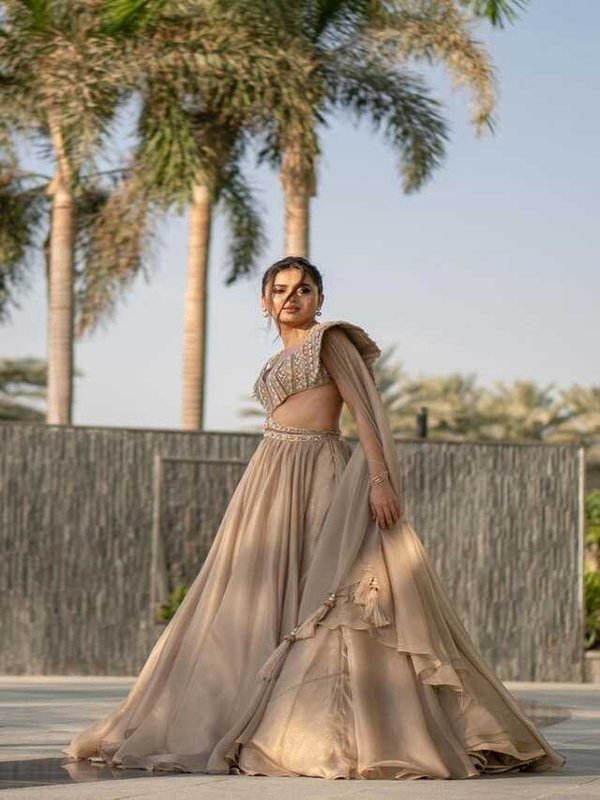 एम्ब्रॉयडरी वर्क गाउन में कर्वी फिगर फ्लॉन्ट करती चित्रांगदा