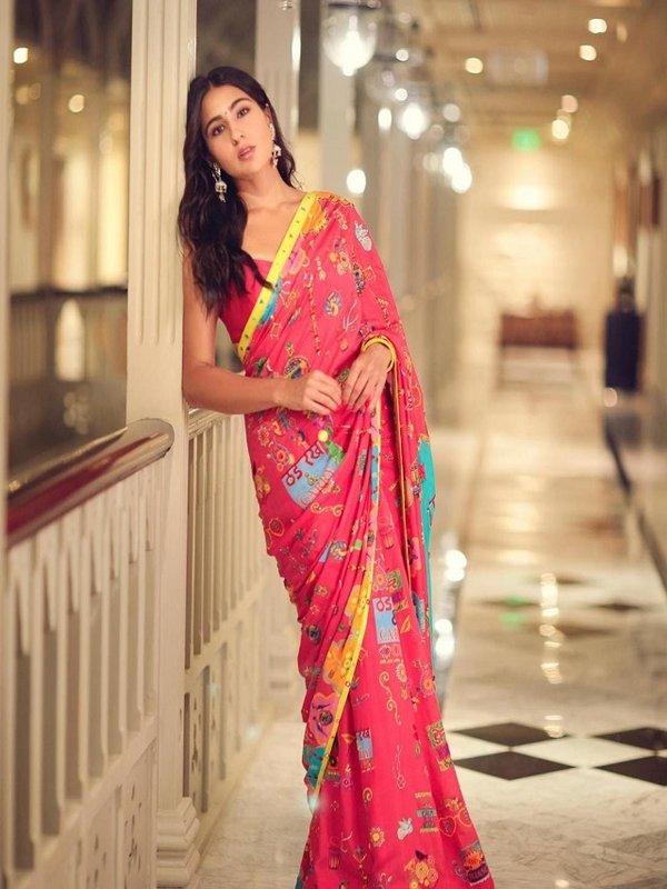 पिंक साड़ी लुक में सारा की ये 10 खूबसूरत अदाएं