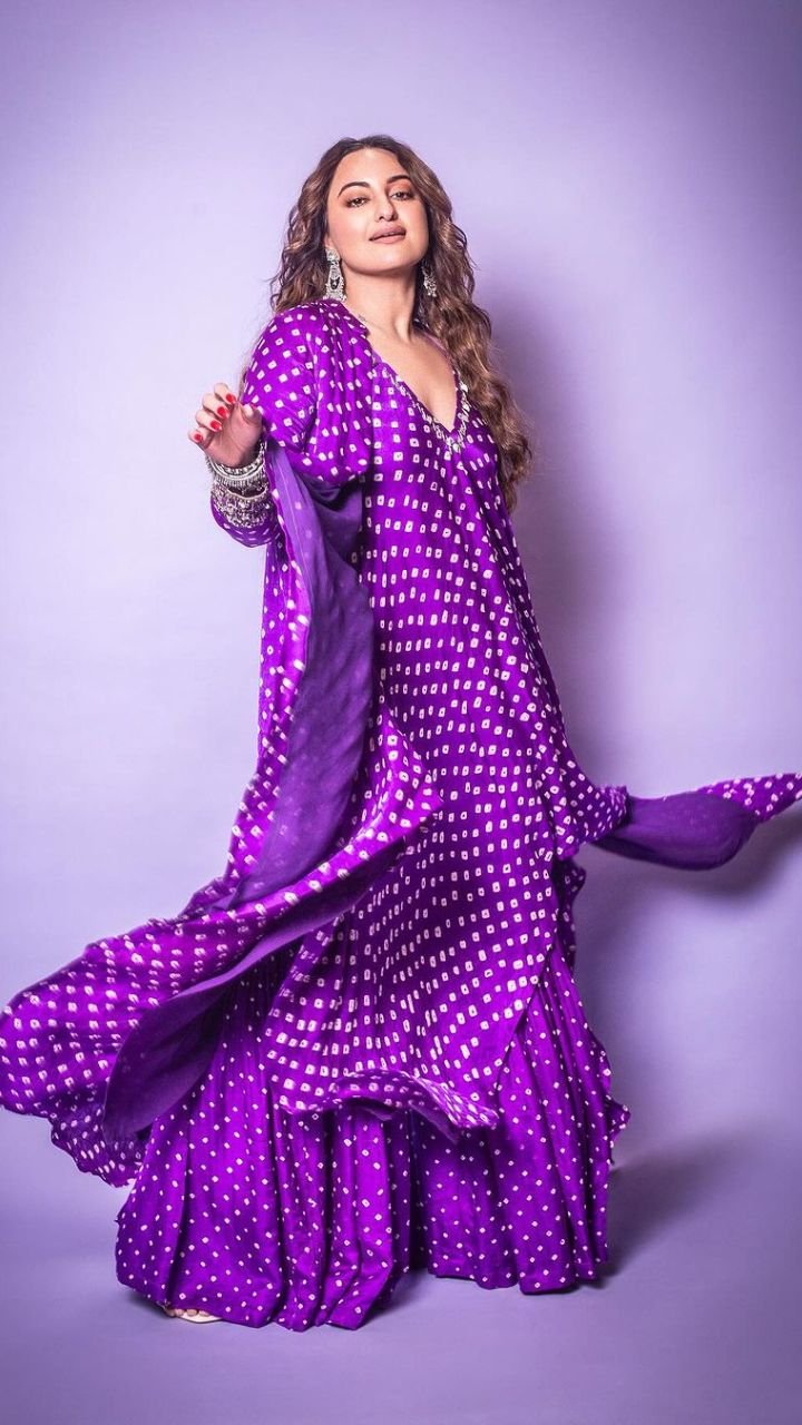 तस्वीरों में वह पर्पल कलर के बांधनी प्रिंटेड डीप नेक कफ्तान में बेहद खूबसूरत लग रही हैं।