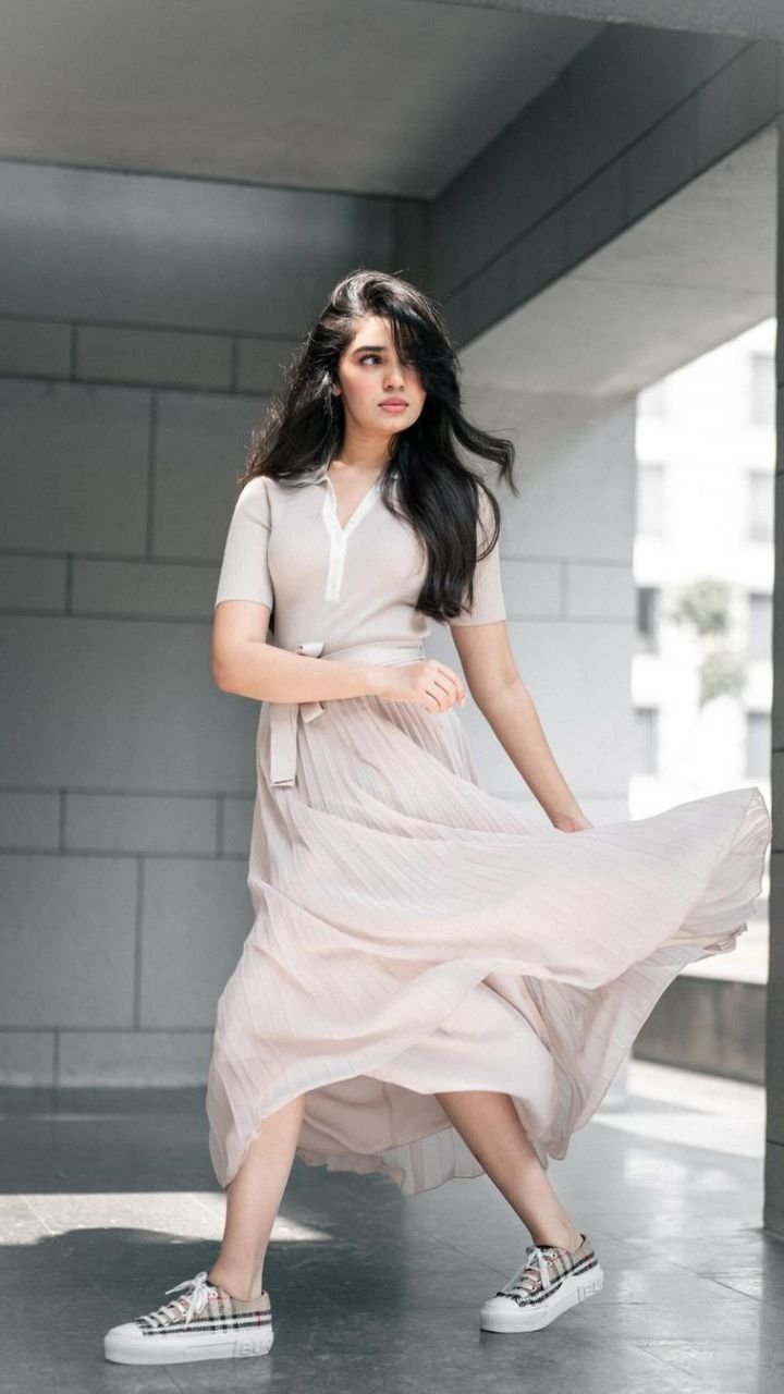 कृति शेट्टी का ये वेस्ट टाई-अप फिट और फ्लेयर ड्रेस है जिसमें वो बेहद हसीन लग रही हैं।
