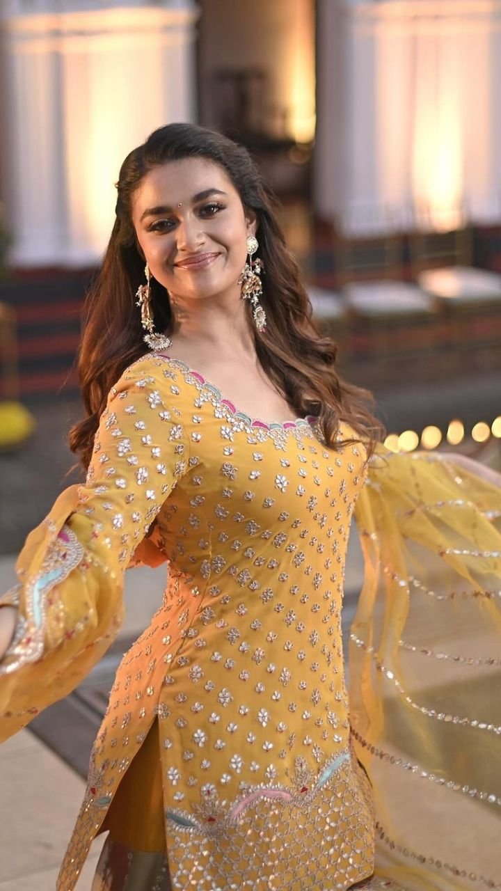कीर्ति सुरेश ने येलो कलर का एंब्रॉयडरी वर्क वाला सूट पहना है जिसके साथ दुपट्टा मैचिंग किया है।