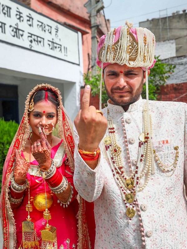 हाथों में मेहंदी, सिर पर चुनरी, शादी की रस्मों के बीच वोट डालने पहुंचे नवविवाहित जोड़े 2 years agoApril 19, 2024