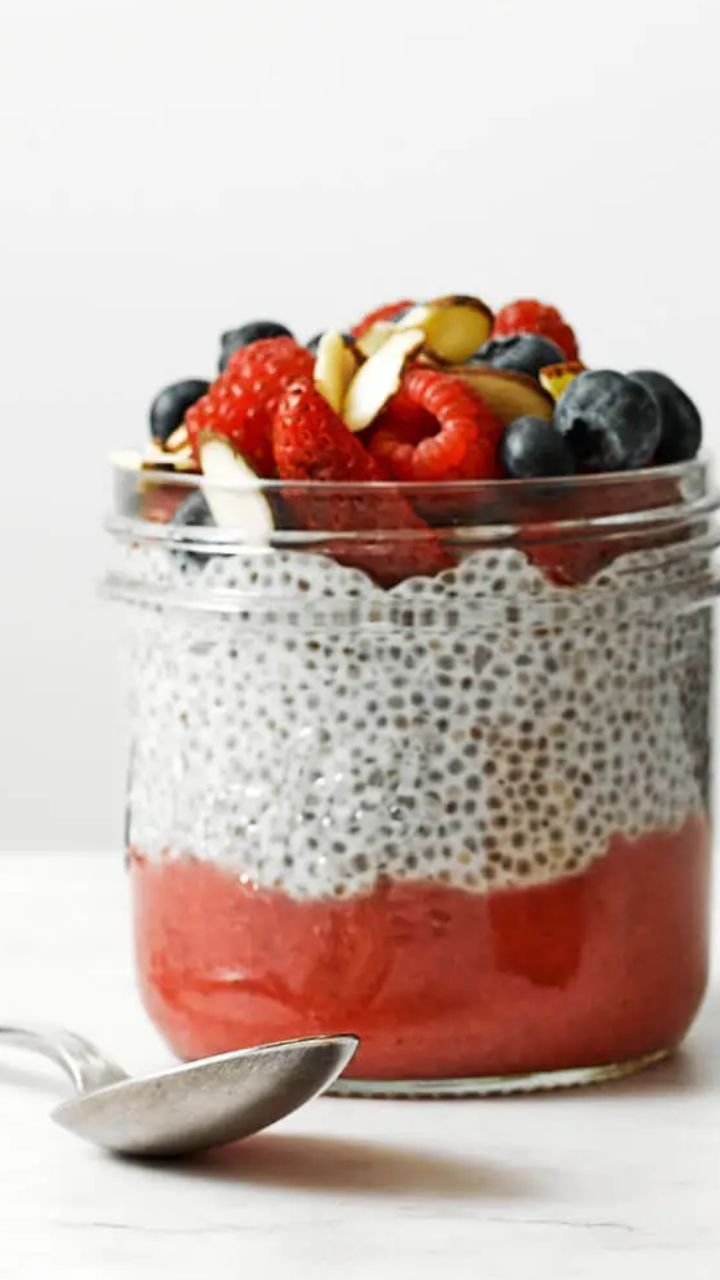 स्वस्थ और संतोषजनक नाश्ते के लिए चिया सीड्स, दही और ताजे फलों की परतें बनाएं और फिर इन्हें खाएं।