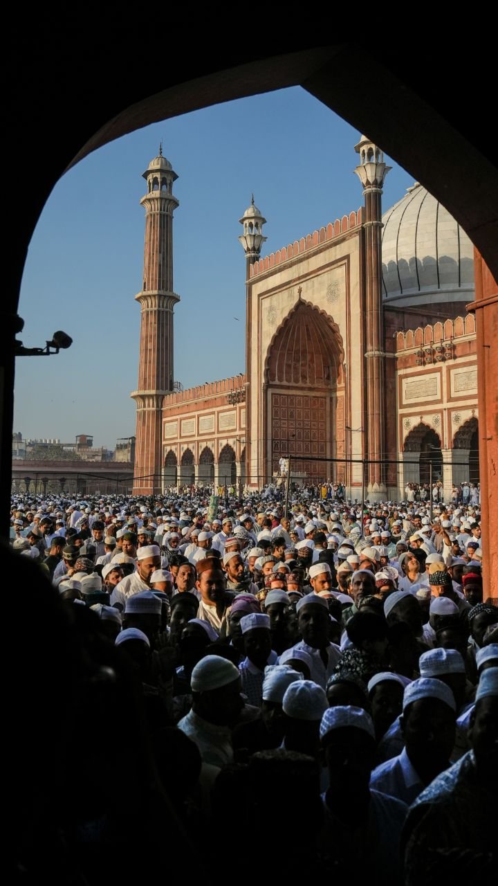ईद के मौके पर दिल्ली की जामा मस्जिद पर काफी संख्या में नमाजियों की भीड़ दिखी।