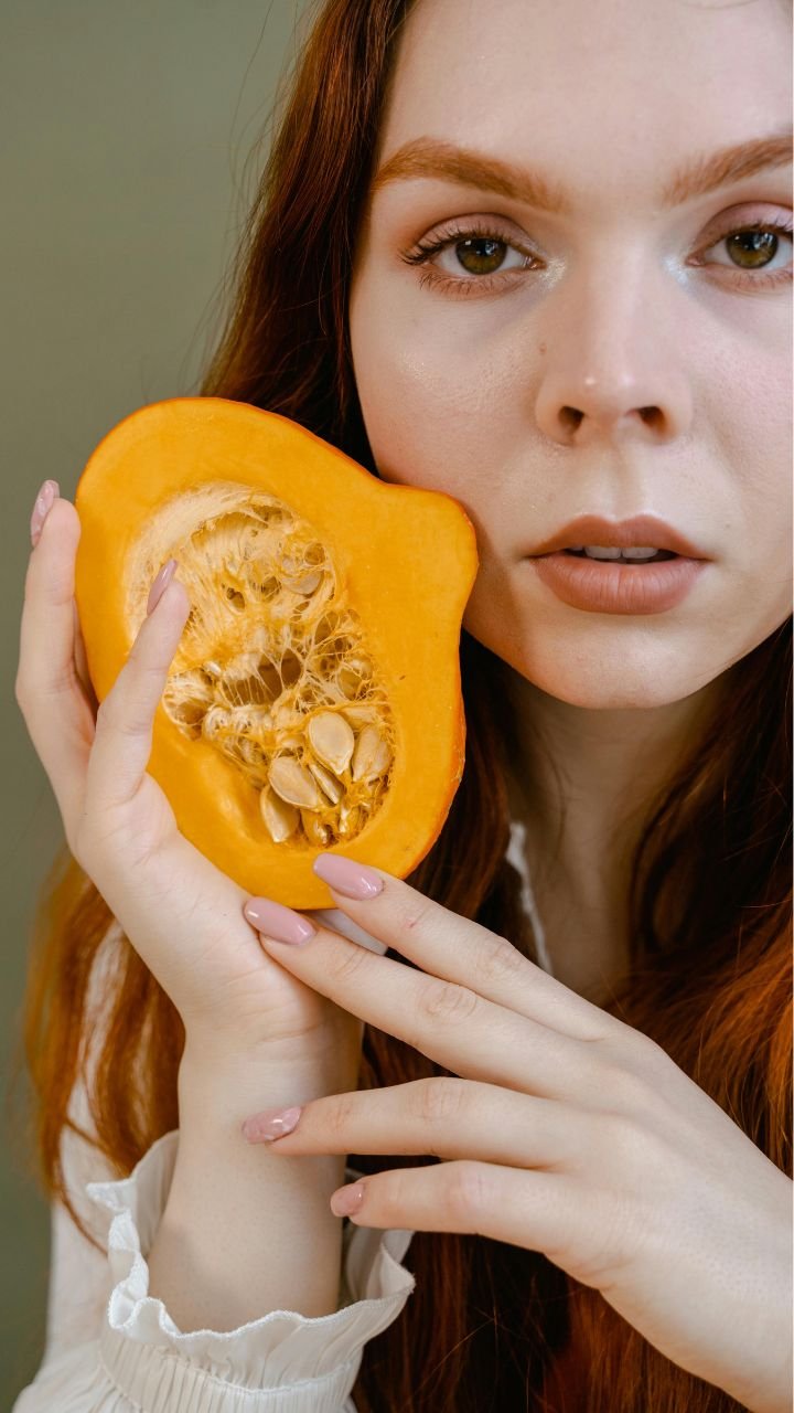 कद्दू में विटामिन ए, सी और जिंक होता है जो स्किन को चमक प्रदान करता है। कद्दू के छिलके में नेचुरल एंजाइम होते हैं जो डेड स्किन सेल्स को एक्सफोलिएट करते हैं और स्किन को ग्लोइंग और मुलायम बनाते हैं।